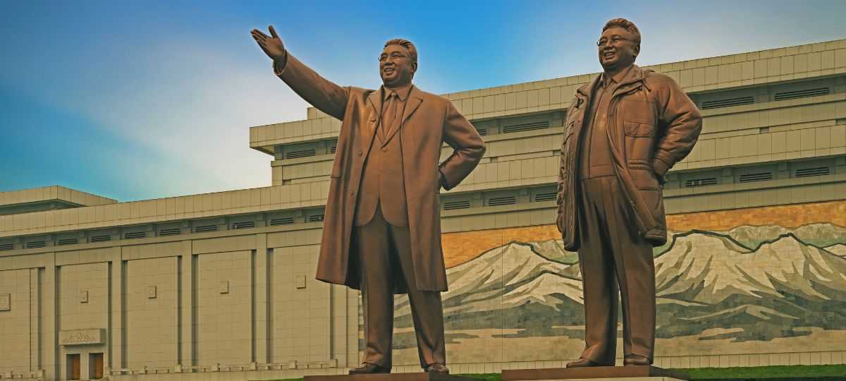 17.02.2025 16:11 ⁦Гигантские бронзовые фигуры Ким Ир Сена и Ким Чен Ира⁩⁦ в Пхеньяне (столица КНДР). Источник фото