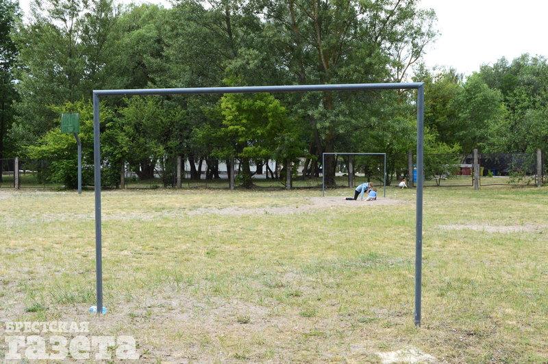 Досуг: Есть баскетбольная корзина. Футбольные ворота в виде турников и столбы для волейбольной сетки.