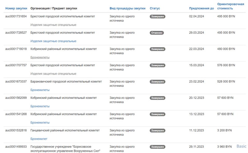 Последние семь тендеров на бронежилеты на сайте госзакупок объявили гор- и райисполкомы Брестчины.