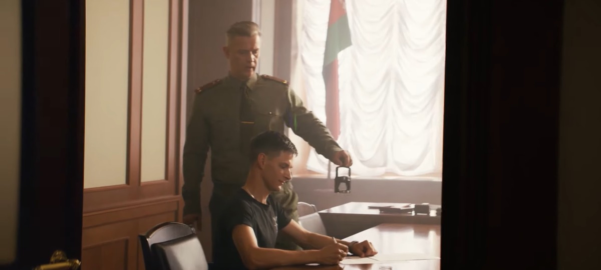 Во втором ролике офицер на фоне красно-зеленого флага говорит подписавшему контракт, что он сделал правильный выбор. А дальше следует нарезка кадров военной службы под такую же эпичную музыку.