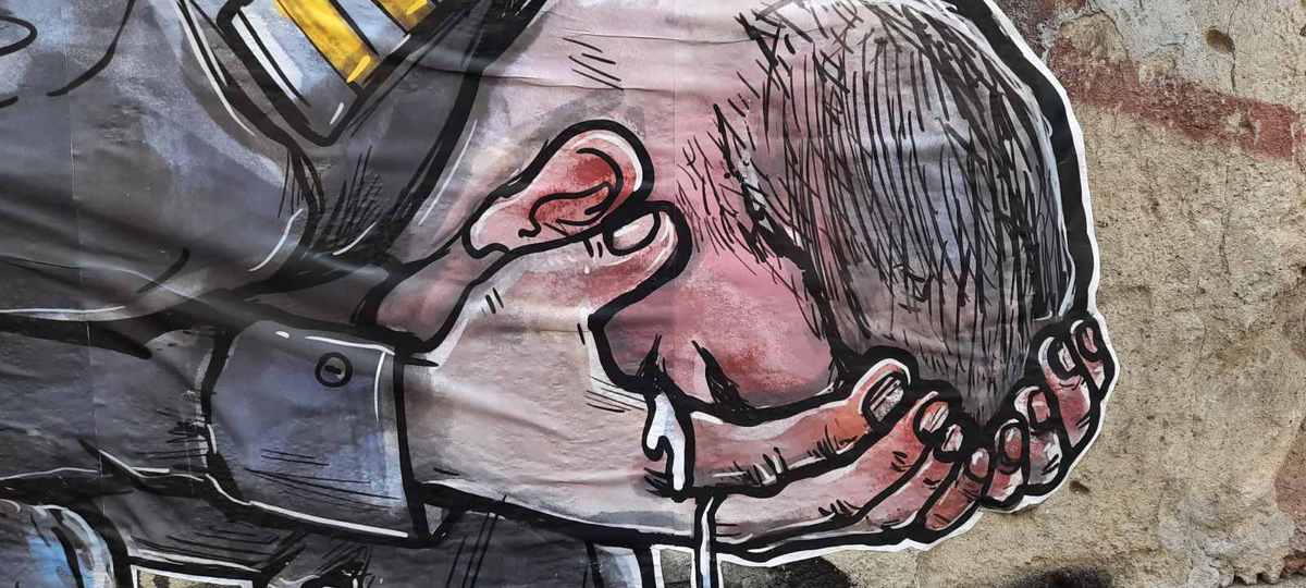 На стене в Бресте появился милиционер, согнувшийся от боли и думающий об Оскаре после задержания Тихановского в Гродно