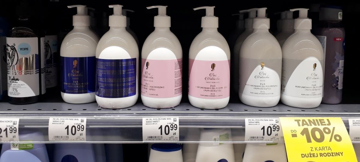 Поллитровая бутылка геля с дозатором от польского бренда Pani Walewska стоит 6,8 руб.