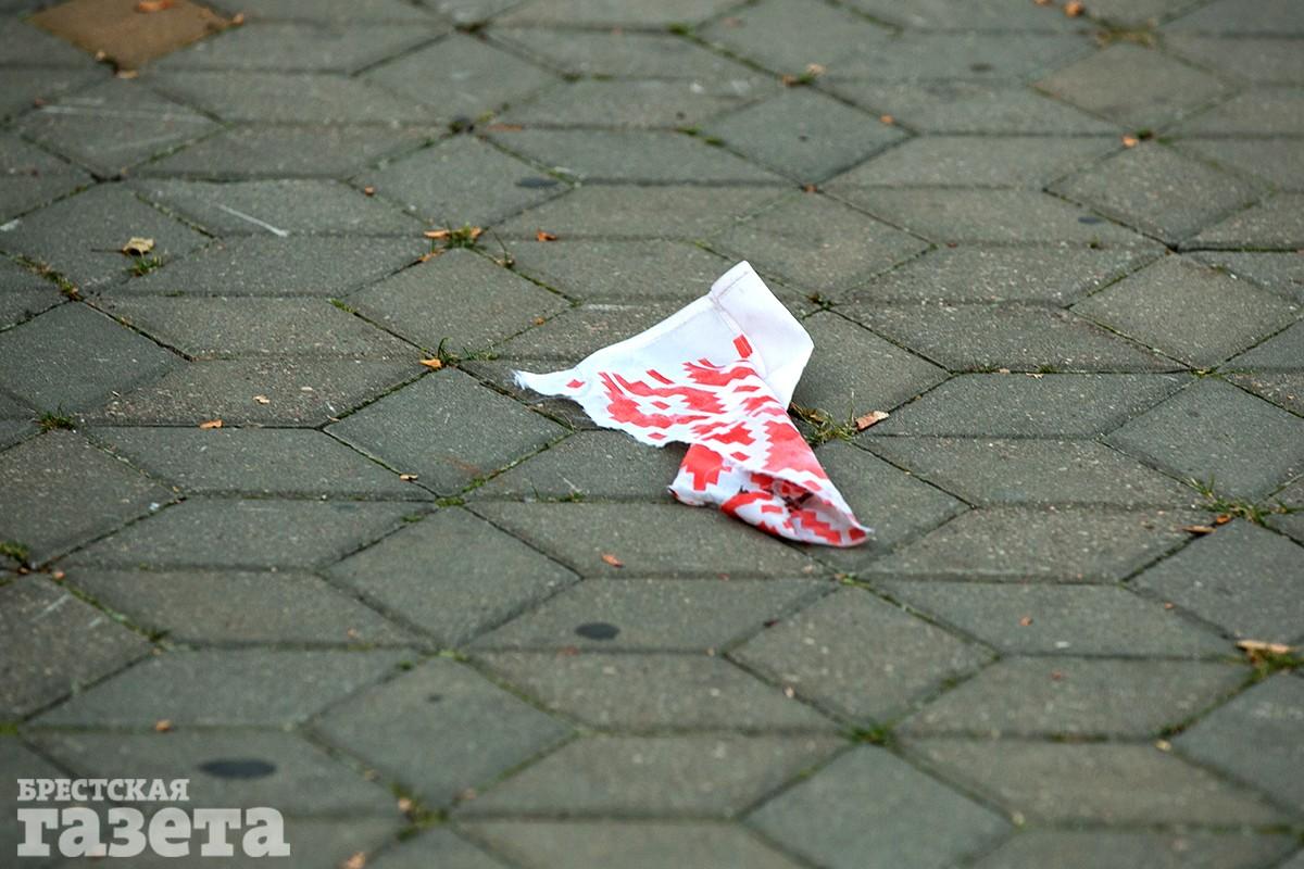 Один из демонстрантов порвал официальный флаг Беларуси.