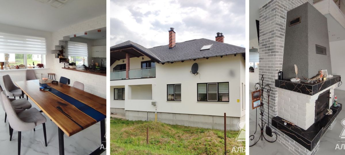 Жилой дом с мансардой 2019 года постройки находится в пригороде Кобрина и глаз особо не цепляет. Белого однотонного цвета, без явных отличительных особенностей в архитектуре. Как пишут в объявлении, для строительства и отделки использованы материалы высокого качества.