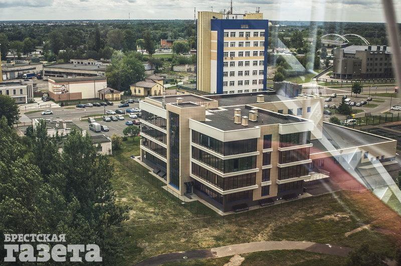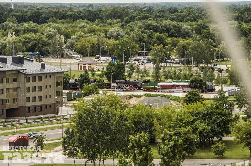 Вадим и Татьяна разместились в открытой кабинке. Ее преимущество в том, что перемещаться можно относительно свободно. Кабинка на самом деле частично закрыта, стекла темные. Чтобы рассмотреть город, нужно приподняться. Удалось увидеть Брестскую крепость и железнодорожный вокзал.