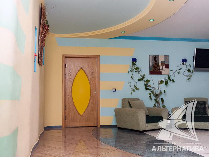 А эта 5-комнатная квартира имеет один уровень. Расположена она на первом этаже 8-этажного кирпичного дома 2002 года постройки.