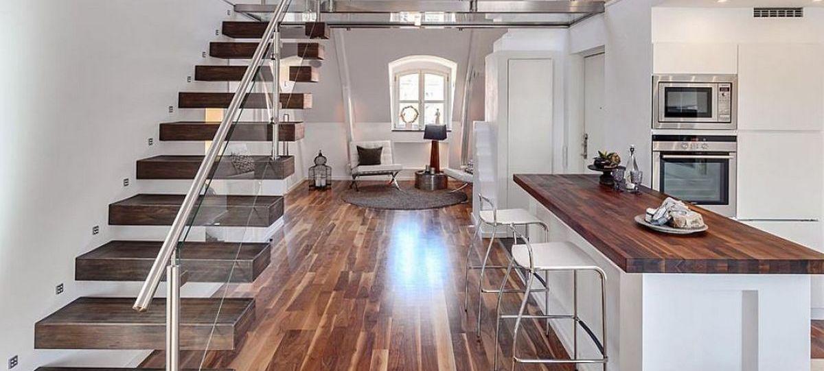 В стоимость квартиры входит вся мебель и техника: телевизор с тумбой из массива дерева, кожаный уголок, робот-пылесос, акустическая система.