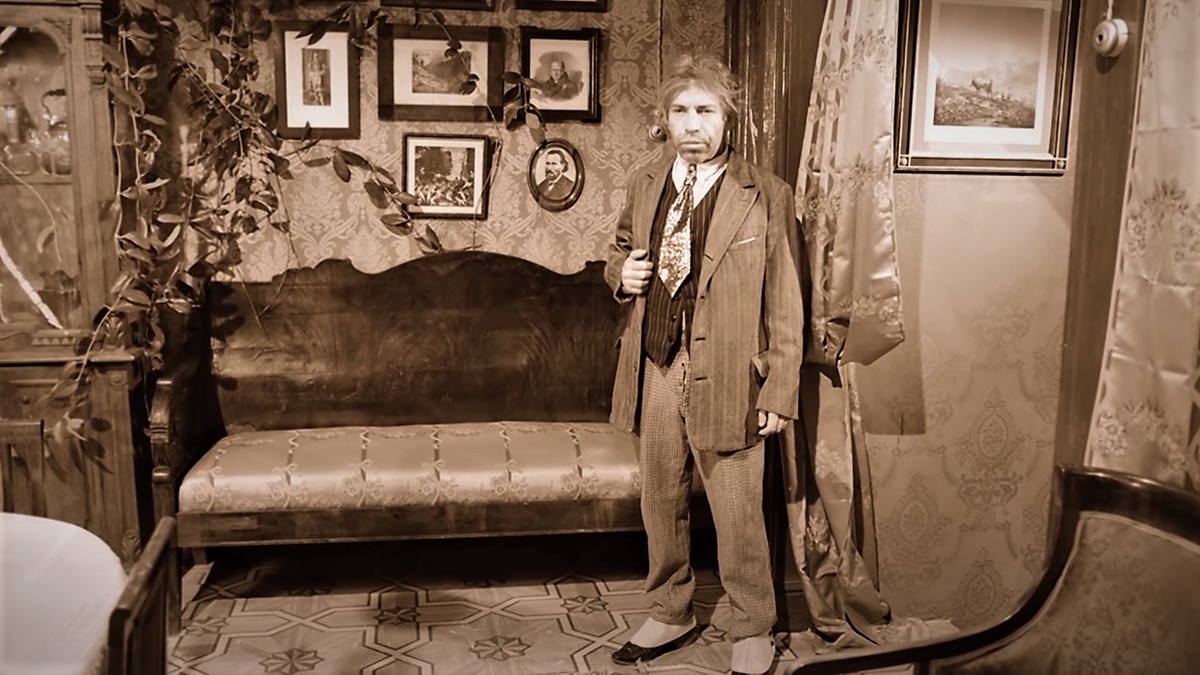 Трехкомнатная квартира в спальном районе славного города Бреста напоминает жилье профессора Преображенского из «Собачьего сердца». Пафосная мебель в стиле барокко, резной сервант, картины на стенах, торшер и ковры – чем не декорации к фильму?