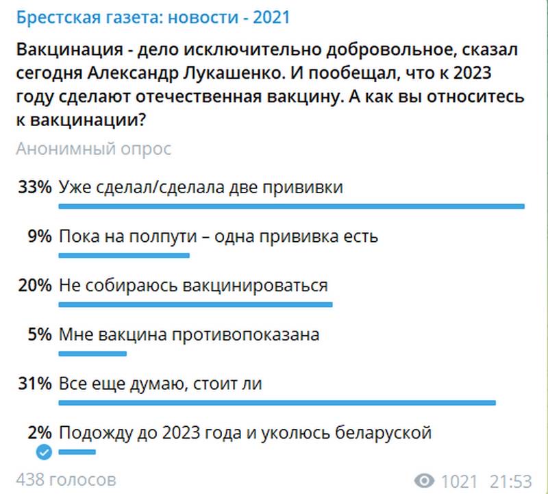 Ну и зря. Да, вакцина не защитит на 100% от коронавируса, но она и не позволит протекать болезни в тяжелой форме. Например, в Бресте в больницах количество привитых пациентов составляет всего 3,3% от всех заболевших.