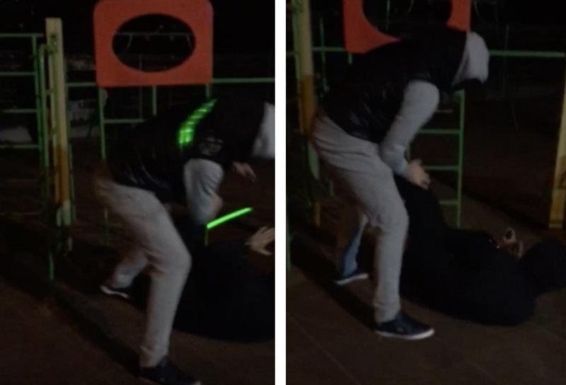 Но один из «гостей» вдруг резко отреагировал словами «Ты чего борзый такой?». Еще свидетели запомнили фразу «Вы мне угрожаете?» от него же. И «гость» пошел в сторону, где стоял Роман, — но в итоге начал задерживать не его, а еще одного парня, стоящего рядом с Романом (назовем его В). Неизвестный «гость» ударил парня В двумя руками в грудь, от удара тот попятился, стал падать. «Гость» не прекращал, начал заламывать руки и толкнул парня В в металлический турник. Там у парня В выпал телефон — но он быстро его поднял и побежал прочь. (Вот видео этого момента.)