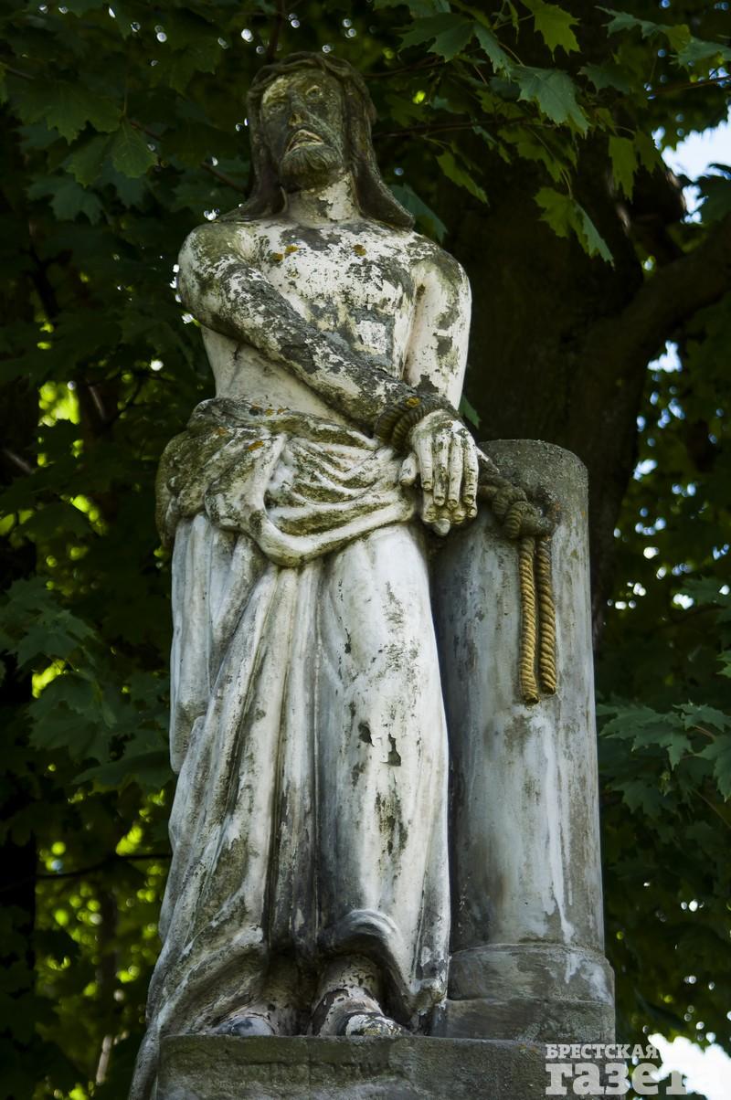Фигура Иисуса Христа Страдающего на памятнике Людвике Пахульской из Шанявских. Обратите внимание, как стоит Господь. Его руки покоятся на постаменте. Известно, что, когда Понтий Пилат отдал приказ наказать Иисуса Христа, его руки привязали к тумбе и били плетьми. То есть мастер изобразил Спасителя в тот момент, когда он был приговорен не к распятию, а только к наказанию.
