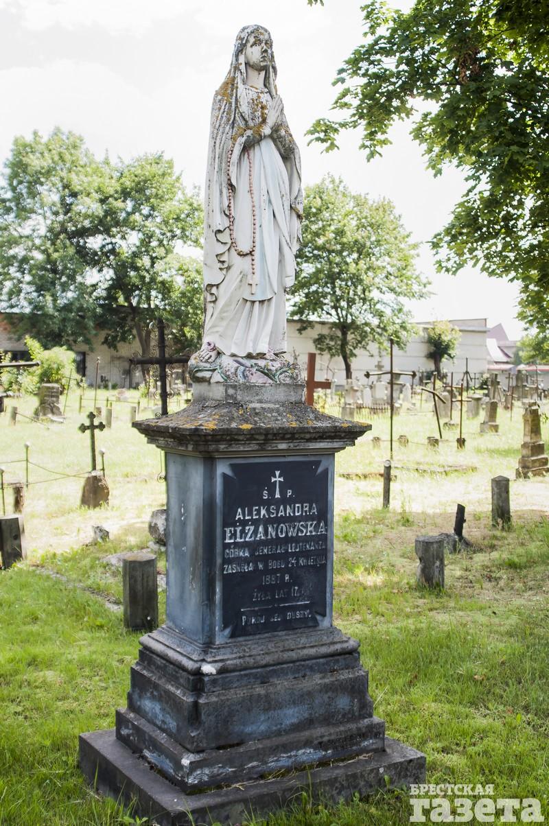 Александра Эльжановска была дочерью генерала-лейтенанта Эльжановского, героя русско-турецкой войны. Она скончалась 24 апреля 1887 года в 17 лет. Как человек состоятельный, генерал-лейтенант заказал памятник у одного из известнейших польских скульпторов. Интересно, что спустя 130 лет на памятнике до сих пор можно различить цвета — зеленый, розовый.