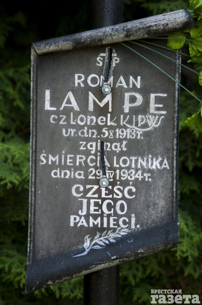 Летчик Роман Лампе. Могилу летчика искали очень долго. Иван Чайчиц вспоминает, что, когда вел экскурсии по некрополю в рамках «Феста экскурсоводов», стоял рядом с захоронением и рассказывал, что его не могут найти.