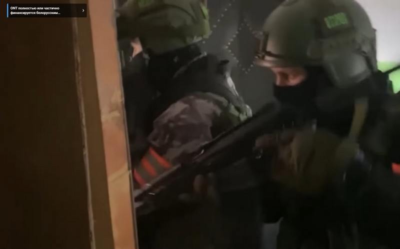 В сюжете также показали кадры брутальных задержаний его знакомых, которые давали пользоваться своим телефоном и ноутбуком. Сначала силовики вломились в квартиру к женщине и приказали ей лечь на пол. Потом они выломали дверь квартиры мужчины и тоже задержали его. Их имена и статус в деле неизвестны.