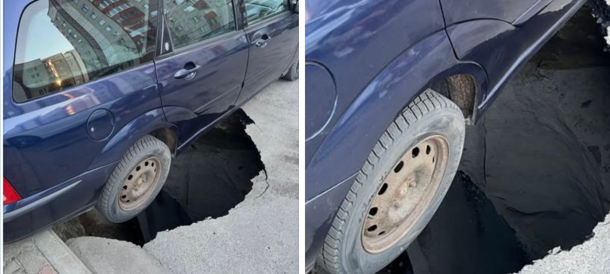 На Вульке, в районе ул. Подгородской, под легковым автомобилем провалился асфальт. По словам очевидцев, яма около трех метров в диаметре и четыре метра в глубину. Колесо машины висит в воздухе, а спасает автомобиль только фаркоп и бордюры с плиткой. К счастью, никто не пострадал.