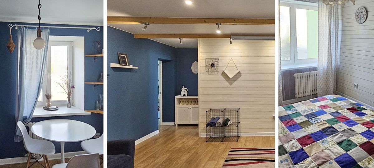 Трехкомнатная квартира в морском стиле находится на первом этаже десятиэтажного кирпичного дома в северо-западной части города. Окна в квартире выходят на разные стороны. Общая площадь составляет 78,5 кв. м. Благодаря использованию эркерных конструкций в архитектуре здания, удалось получить уникальную и просторную планировку, пишут в объявлении.