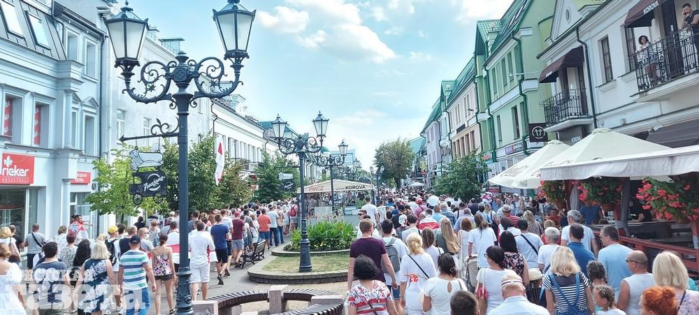 В это воскресенье, 30 августа, брестчане пошли по новому маршруту. На этот раз бело-красно-белая колонна на перекрестке улицы Московской возле «Беларусбанка» повернула налево — на Пионерскую. Дойдя до перекрестка с Пушкинской, они свернули на эту улицу и вернулись в центр города к ЦУМу.