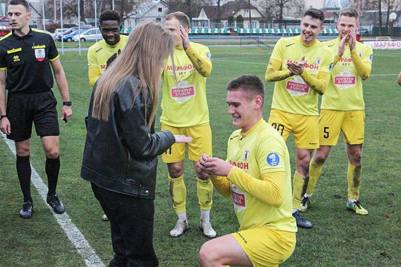 «Как оказалось, изначально все планировалось после игры, во время награждения. Влад заранее подготовил кольцо и цветы. Все это было у игроков на скамейке. Когда «Волна» заработала пенальти, в «Сморгони» сразу же передали мяч Владу и сказали: «Это твой шанс», — описывает происходящее девушка.