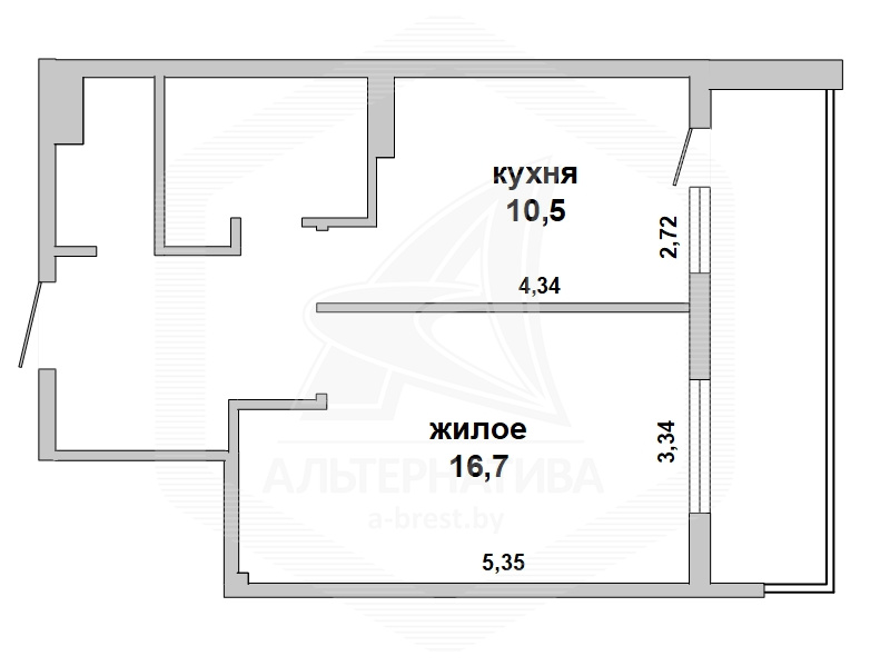 Вот такую однокомнатную квартиру площадью 40 «квадратов» мы нашли за 61 тысячу евро.