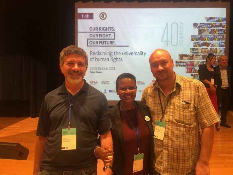 Вице-президенты Артак Киракосян и Валентин Стефанович. В центре президент FIDH Элис Магве