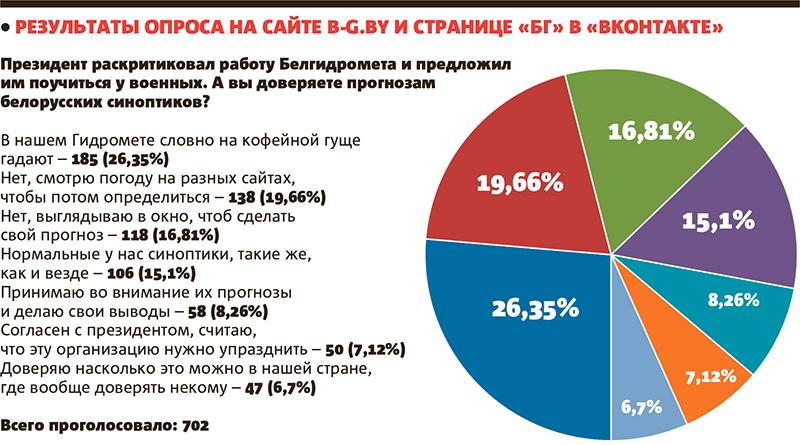 Александр Лукашенко раскритиковал качество прогнозов погоды, которые находятся в ведении департамента по гидрометеорологии Министерства природных ресурсов и охраны окружающей среды. Об этом глава государства заявил 14 сентября, назначая на должность министра природных ресурсов Андрея Худыка, сообщает пресс-служба президента Беларуси.