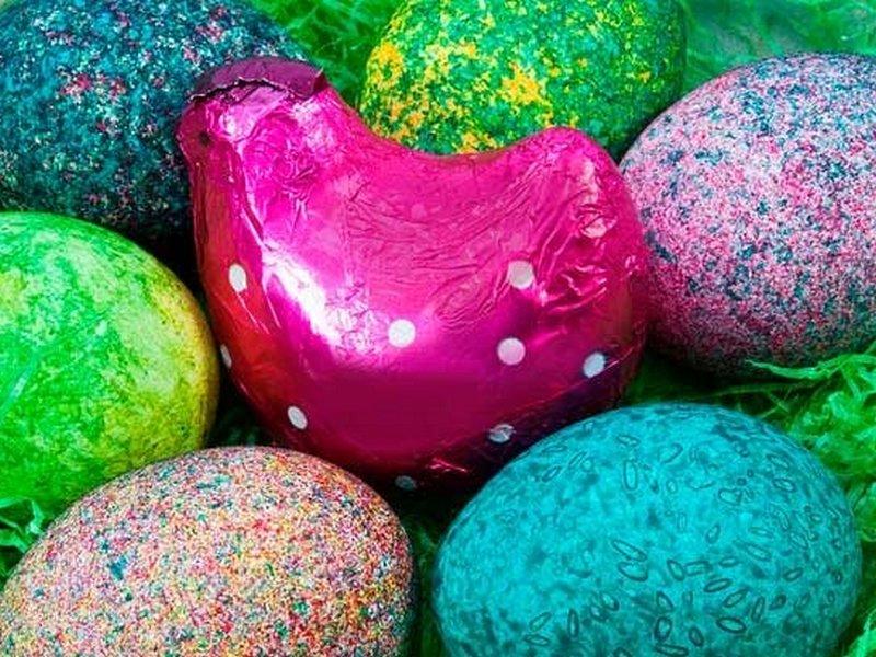 Раскрашивать яйца можно не только карандашами, но и с помощью посыпки восковой крошкой. Мелки надо натереть на мелкой терке, а потом эту крошку высыпать на горячее, только что сваренное яйцо.