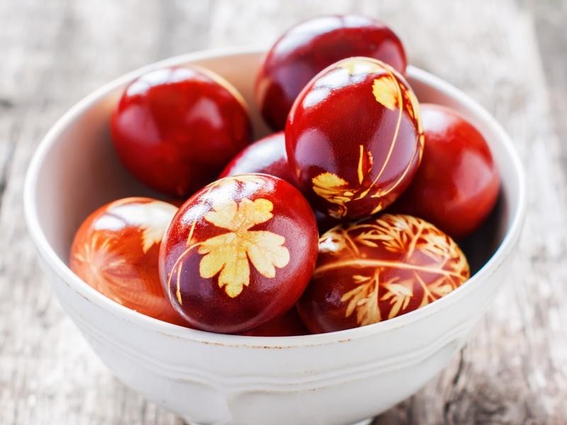 Наши бабушки красили яйца в луковой шелухе. Это до сих пор актуально и популярно. В результате можно получить красные яйца, а также желтого, коричневого цвета или их оттенков.