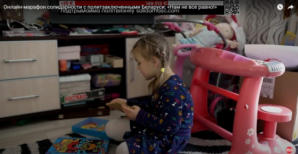 Далее в онлайн-марафоне показали сюжет про семью политзаключенных Антонины Коноваловой и Сергея Ярошевича. Их дети знают, где родители, за что их посадили. Знают, что они герои. Дети ждут, когда их родители выйдут на свободу. Напомним, Антонине и Сергею присудили по 5,5 лет колонии.