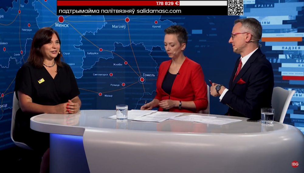 После этого в гости к «Белсату» пришла журналистка Евгения Долгая — авторка проекта «Палiтвязынкi», который рассказывает о политзаключенных женщинах с помощью их портретов, а также собирает для них передачи и бандероли в колонии, СИЗО и тюрьмы.
