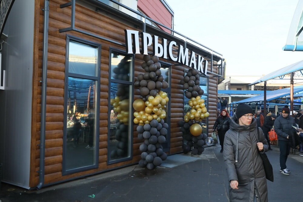 Зашли мы и в довольно популярный на рынке магазин «Прысмаки», где представлены продукты предприятий потребкооперации Брестского региона. Здесь ценники примерно такие же, как и на рынке. Но можно прикупить деликатесы, которые отсутствуют на торговых рядах под куполом. Например, корейка — 18 руб., щековина копченая — 12,80, грудинка 19,80, подвяленные балык и филе — 28 рублей, колбаса «еврейская» из Мотоля —за 32 рубля.
