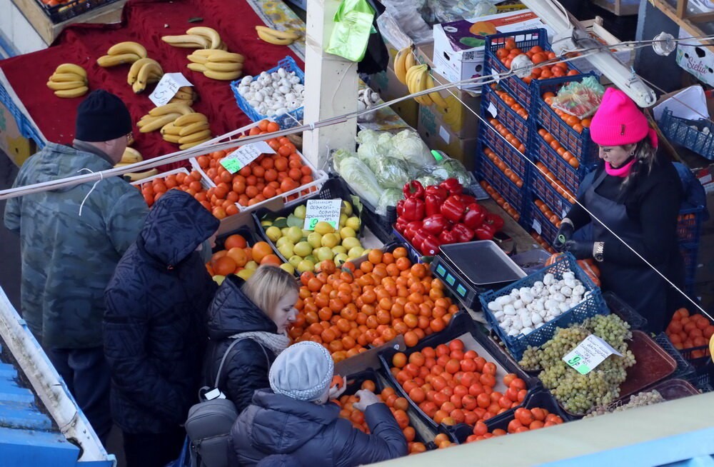 Овощи и фрукты также существенно подорожали. Картошка отборная стоит 1,5-2 рубля за килограмм, морковь — 1,30, лук — 1,50, капуста белокочанная — примерно столько, а вот свекла — уже 3,5-4 руб. Мандарины улетают за 8 рублей, груши «Конференция» — 6,50. Яблоки меньше чем за 3 рубля найти почти нереально. Огурец салатный — 8-10, помидоры и перец — в среднем по 7-14, чеснок — 10 руб. за кг. Цена на виноград «киш-миш» доходит до 18 рублей, можно найти и дешевле, но уже помятый. Эта группа товаров с декабря подросла процентов на 15.