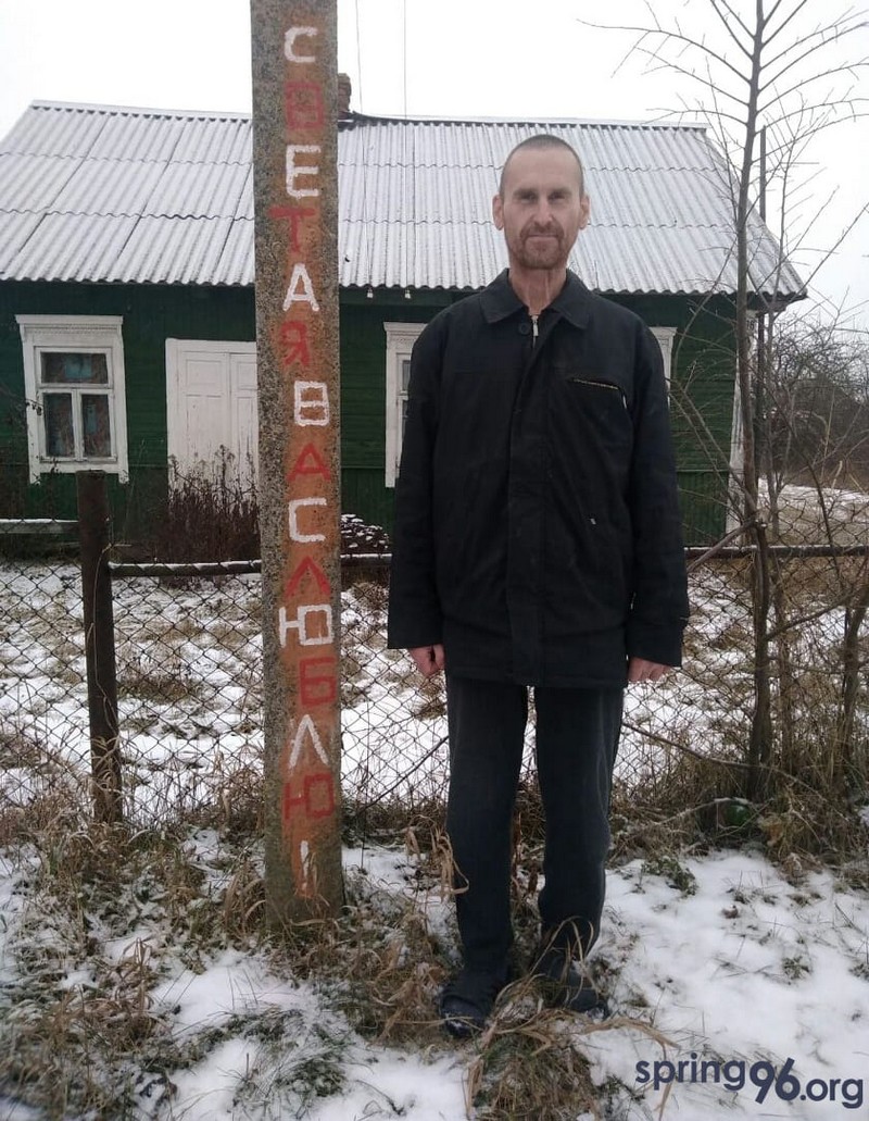 39-летний Александр Плескацевич живет в деревне Куршиновичи Ляховичского района. 6 декабря 2021 года его судили за то, что сделал несколько надписей в бело-красно-белом исполнении, в том числе на столбе ЛЭП возле своего дома написал «Света, я Вас люблю».