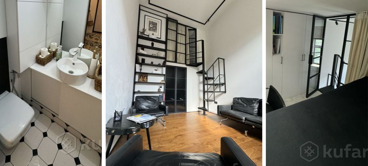 Вторая уникальная особенность — площадь и планировка жилья. Мы имеем дело всего с 18,5 кв. м и двумя уровнями. Если вы думаете, что такой метраж — приговор для функциональной планировки, то ошибаетесь.
