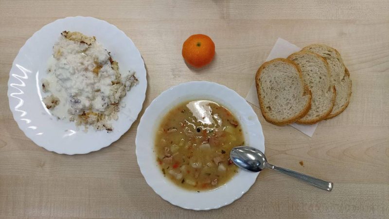 «Хочу сказать, что сын всегда очень доволен едой из столовой. Стоит такой обед 9 злотых [5,1 рубля]. Обычно на второе мясо, как сын говорит, «котлета с кулак». Но бывают дни, когда на второе что-то сладкое. Вот, например, такая запеканка», — говорит отец.