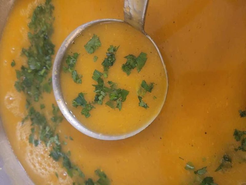 «На первое — нажористый фасолевый суп с мясом, на второе рисовая запеканка с яблоками и сладким соусом», — отметил папа ученика.
