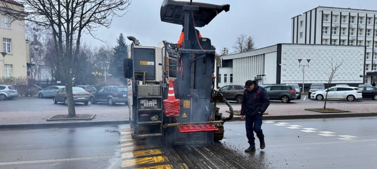 Специалисты «Барановичиремстроя» срезали две искусственные неровности дорожной фрезой на улице Советской.