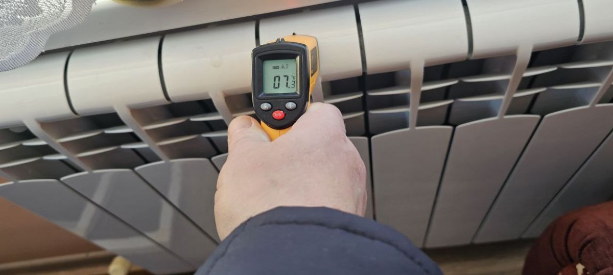 Замеры показали разительную разницу: одна батарея — 66 градусов, другая в той же комнате — всего 7. Воздух в помещении прогрелся лишь до +9.