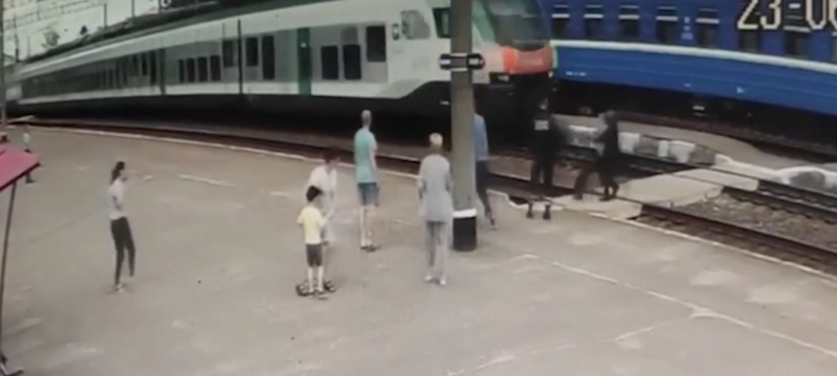 На перроне станции Ивацевичи при переходе железнодорожных путей споткнулся мужчина, пишет местная районная газета. Это произошло буквально за секунды до приближающегося скоростного поезда. На видео видно, как некоторые хотели помочь мужчине подняться, но растерялись.