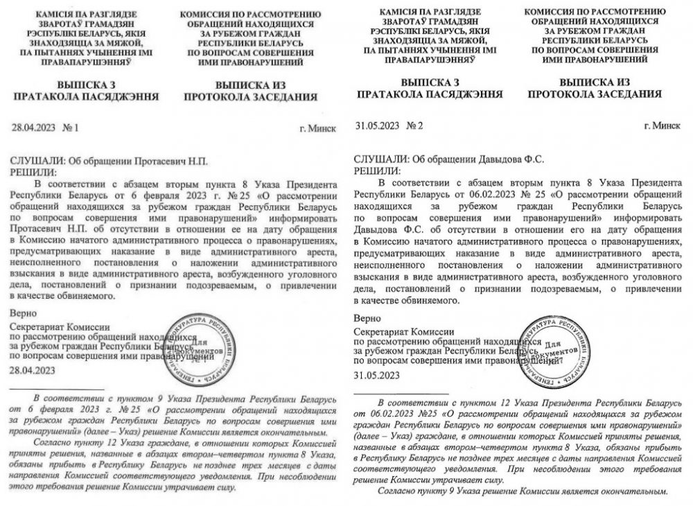 Очередное заседание комиссии по возвращению уехавших беларусов прошло в Минске 7 сентября. По одному обращению было принято решение об «информировании заявителя о его процессуальном положении по уголовному делу». Другим же сообщили об отсутствии в отношении них на дату обращения административного или уголовного дела.