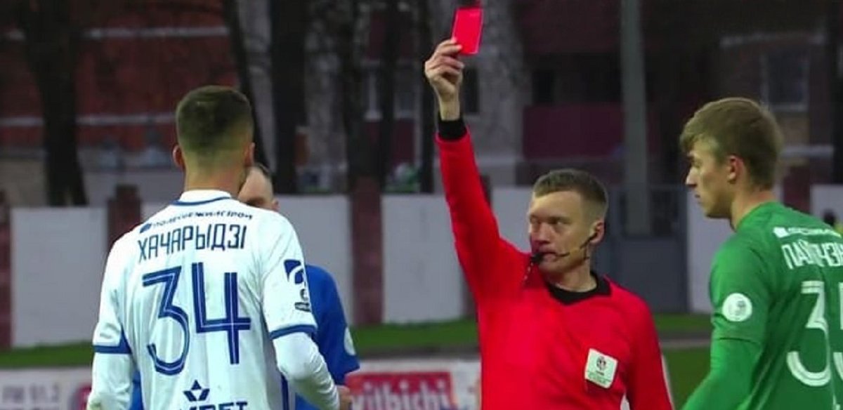 25.08.2021 21:21 Евгений Хачериди получает красную карточку. Фото из соцсетей.. Источник фото