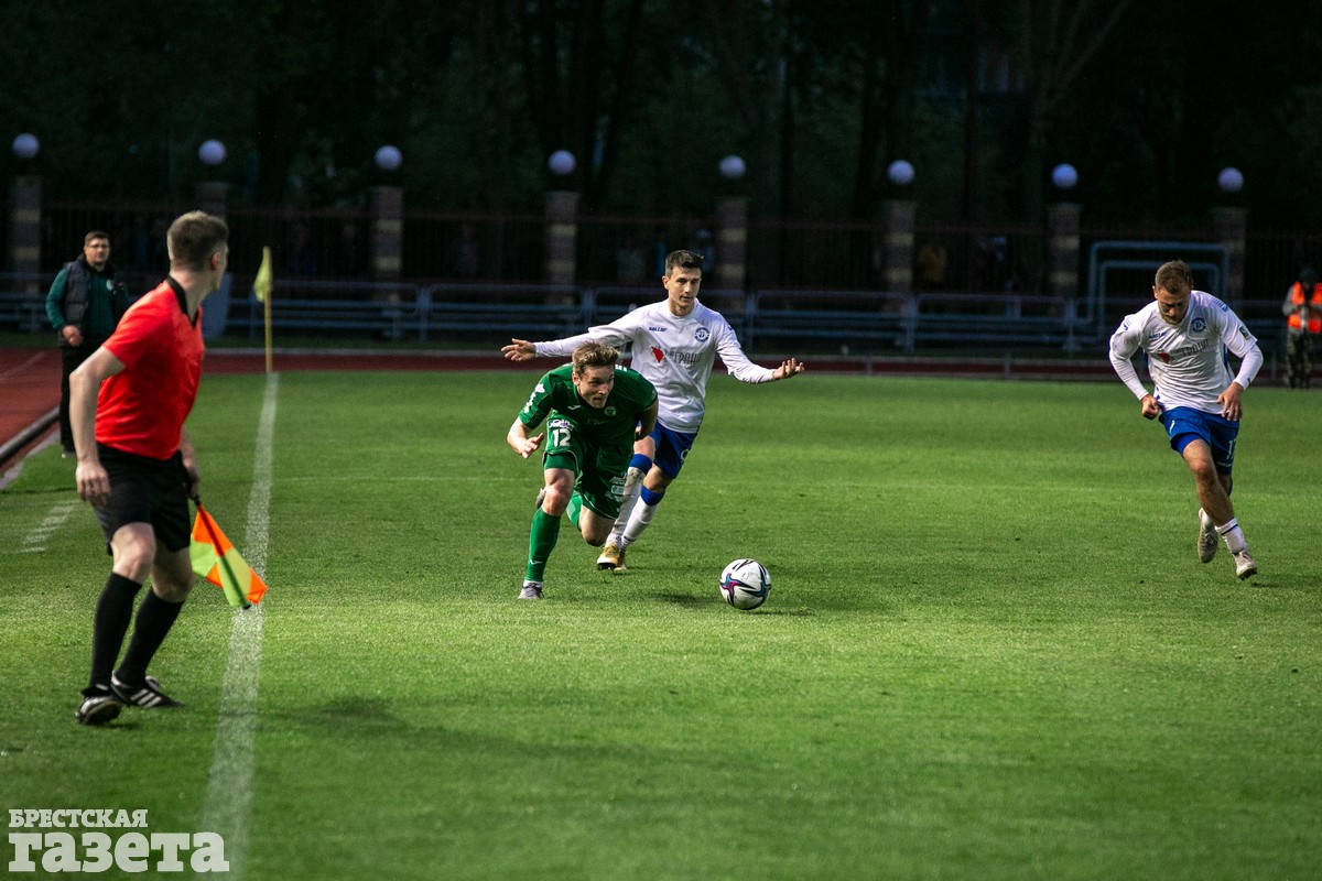 Вскоре гомельчане ответили дальним ударом Вадима Побудея в угол — Роман Степанов тоже был на месте и отбил выстрел. Постепенно брестчане установили контроль над мячом, а гости лишь изредка убегали в контратаки. После перевода Павла Седько на левый фланг хозяева поля заиграли в атаке активнее. Павел не только сам несколько раз пробил по воротам, но и создал пару моментов для партнеров. Но они так и не смогли пробить Олега Ковалева.